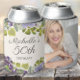 Plum purple watercolor floral and green leaves botanical garden 50th birthday party can cooler personalised with the name and age of the guest of honour on the front and her photo on the back. Contact me for assistance with your customisation or to request additional matching or coordinating products for your event.