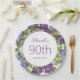 Purple Floral Green Leaves Vines 90th Birthday Paper Plate