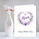 Celebrate Mother's Day with this elegant card featuring a beautiful purple floral heart design. Easily personalise the inside of the card with your own heartfelt message using the convenient text template. Tell your mum how much she means to you with this special touch on her special day.