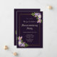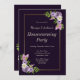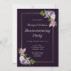 A purple and lavender floral housewarming party invitation with pink and purple feathers and delicate green fern leaves.