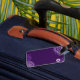 A great luggage tag that will let you stand out from the crowd. It features a purple background with white and lavender flowers. You customise your information in the centre.