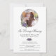 Elegant purple floral memorial service/celebration of life/funeral invitation featuring a photo inside a silver frame adorned with purple watercolor roses.