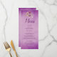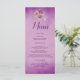 This wedding reception menu features a lovely purple floral wedding reception menu using a purple floral display on a purple background. Featuring "Menu" written at the top using cursive purple font, all of your information is printed in purple readable font on a purple background. Customise as you choose.