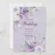 Beautiful purple watercolor floral cascade of flowers and watercolor greenery flowing down over fancy script and modern font in coordinating purple colour. Lavender background. If you want romance, this invitation is perfect. So chic and sophisticated. The back of this invitation is done in a deeper shade to add drama and blend in with the cascade of flowers flowing down the front. This lovely invitation. Such an elegant wedding invitation. I’ve enjoyed creating this design for you. Zazzle guarantees 100% customer service and satisfaction.
