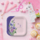 Purple Floral Monogram Elegant Blush wedding Party Paper Plate