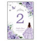 Purple Floral Princess Silver Quinceañera XV 16 Table Number
