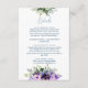 Purple and Green Floral Design Enclosure Card featuring navy blue text on a crisp white background. This chic card combines timeless elegance with modern convenience, as it includes a discreet QR code for easy access to additional wedding details. The vibrant floral motif adds a touch of sophistication to your invitations, making this enclosure card the perfect blend of tradition and innovation for your special day.