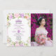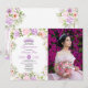 Purple Floral Quinceañera 15th Birthday Photo Invitation
