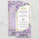 Purple Floral Rose Quinceañera Sweet 16 VIP Ticket Invitation
