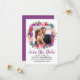 Purple Floral Save the Date Card with Photo