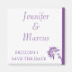 Let all your family and friends know to save the date with this pretty floral magnet. Magnet is fully customisable and features a white background with a purple flower.