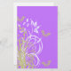 Elegant scrapbook pages that features a light purple floral design with gold butterflies on a purple background. This elegant flower stationery is perfect to use for scrapbooking projects.