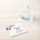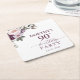 Purple Floral Script 90th Birthday Square Paper Coaster