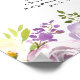 Elegant wedding bar sign lets your wedding guests know what cocktails you're offering. Cheers to Love is the top line. It's written in a beautiful script font. Signature Cocktails is just below in a classic serif font in all caps. The bride and groom choice of cocktails follow. Purple and ivory white flowers create beautiful borders on the top and bottom.