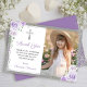 Purple Floral Silver First Holy Communion Photo Thank You Card