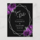 Purple Floral Silver Geo Frame Black Save the Date Postcard