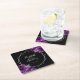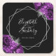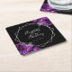 Purple Floral Silver Geometric Black Wedding Square Paper Coaster