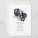 Whimsical vintage floral gothic skull wedding invitation in accents of purple and black customisable to your event specifics. Ideal for any given theme or garden wedding.