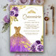 Purple Floral Sparkle Dress Gold Quinceanera Invitation