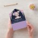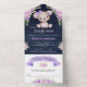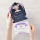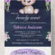 Purple Floral Teddy Bear Navy Blue Baby Shower All In One Invitation
