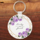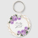 Purple Floral Wed Elegant Gold Glitter Geometric Key Ring