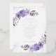 Beautiful wedding invitation with purple flowers and foil writing.