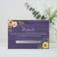 Elegant, rustic, boho, botanical, rustic wood purple wedding details card with watercolor flowers and sunflowers.