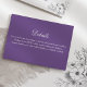 Add a polished and coordinated touch to your wedding stationery with this purple floral wedding details card, featuring elegant white line-art florals and a personalized monogram back. Perfect for sharing extra information with guests—such as your wedding website, RSVP website, reception details, accommodations, or directions—this card helps keep everything organized in a stylish way.