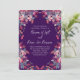 Beautiful bold purple, sage, cream and peach floral motifs on a rich deep purple background are an elegant and classic look for this floral wedding invitation. Great for fall weddings with a subdued yet lively colour palette. Beautiful script text paired with a serif font are elegant and classic for your rustic yet modern wedding day.