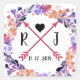 Purple Floral Wedding Monogram Wreath Design Square Sticker