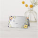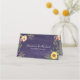 Elegant, modern, boho, botanical, rustic wood purple wedding place card with name and table number, watercolor flowers, sunflowers and greenery.