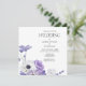 Design features purple watercolor flowers at the left bottom corner and white background. Available is many different sizes of invitation . Easy personalisation process start with clicking button 'PERSONALIZE' that gives you the board automatically for your purpose.