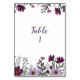 These wedding table numbers feature a beautiful floral design in dark and light purple. All text is editable so you can have as many table numbers as you like!