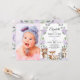 This super adorable woodland-themed birthday invitation features sweet forest animals and soft purple floral greenery wreath. Use the design tools to edit the text, change font colour and style to create a unique one of a kind invitation design.