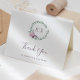 Purple Floral Wreath Monogram Wedding Thank You Card