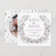 Indulge in rustic elegance with our botanical-themed save-the-date photo invitation. This sophisticated invitation captures the essence of rustic charm, adorned with a captivating wreath of purple and lavender flower blooms. Set the perfect tone for your celebration with this refined and stylish design.