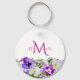 An elegant border of violet, lavender coloured, purple and white watercolored pansies. Templates for a monogram letter and a name, pink and purple coloured letters.