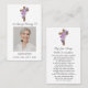 Purple Flower Cross Photo Funeral Prayer Card