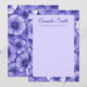 Blank stationery note cards featuring your name in an elegant script font with custom text below. Around the edge and on the back is a purple flower pattern.