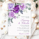 This rustic and elegant wedding invitation features watercolor violet purple flowers and eucalyptus leaves. The text combines handwritten script and serif fonts for a stylish and modern look. This is perfect for a spring or summer wedding.