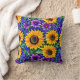 Pretty yellow and purple botanical flowers and sunflowers with green foliage throw pillow.