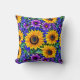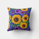 Purple Flowers and Yellow Sunflowers Floral Cushion
