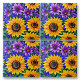 Purple Flowers and Yellow Sunflowers Floral Tile