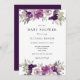 Baby Shower invitation featuring watercolor purple and lavender flowers. Personalise with your information or click "Click to customise further" to edit font styles, size and colours.
