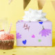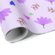 Fun purple flower pattern with bright blue hearts on lavender purple background.