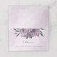 Unique place card featuring romantic dusty purple flowers and green leaves.