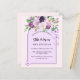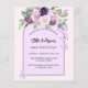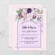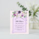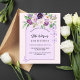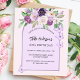 A blush pink background and an arch frame. Decorated with violet and purple watercolored flowers and butterflies. Personalise and add your name and party details.