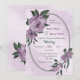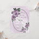 Unique wedding invitation featuring romantic dusty purple flowers and green leaves on a beautiful oval geometric frame.