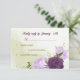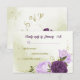 Beautiful wedding response card rsvp featuring lilac and eggplant purple flowers and green leaves