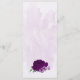 Beautiful romantic wedding menu card featuring purple flowers and some green leaves .